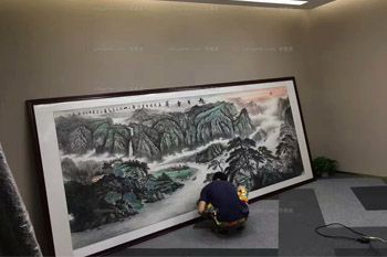 酒店挂画 四米大画安装过程 字画美客户订制作品安装实际图