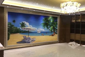 酒店挂画 460x257cm海边沙滩美女手绘油画工程 酒店大堂配画 字画美客户订制作品安装实际图
