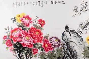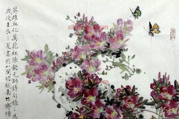 檀东铿 四尺斗方花鸟作品【英雄血化万花红】m1116