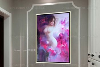 玄关 家庭挂画 客厅挂画 欧式风格配画 字画美客户订制作品安装实际图