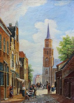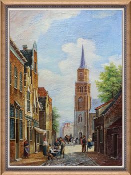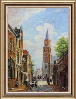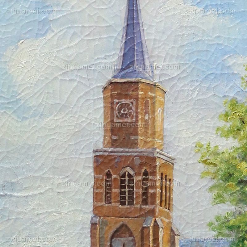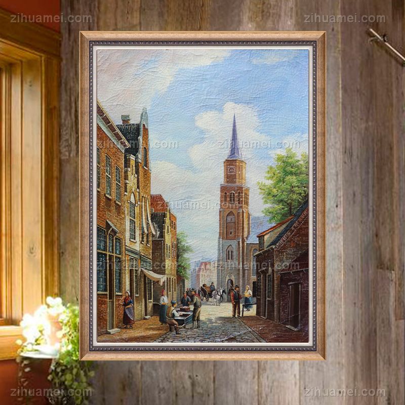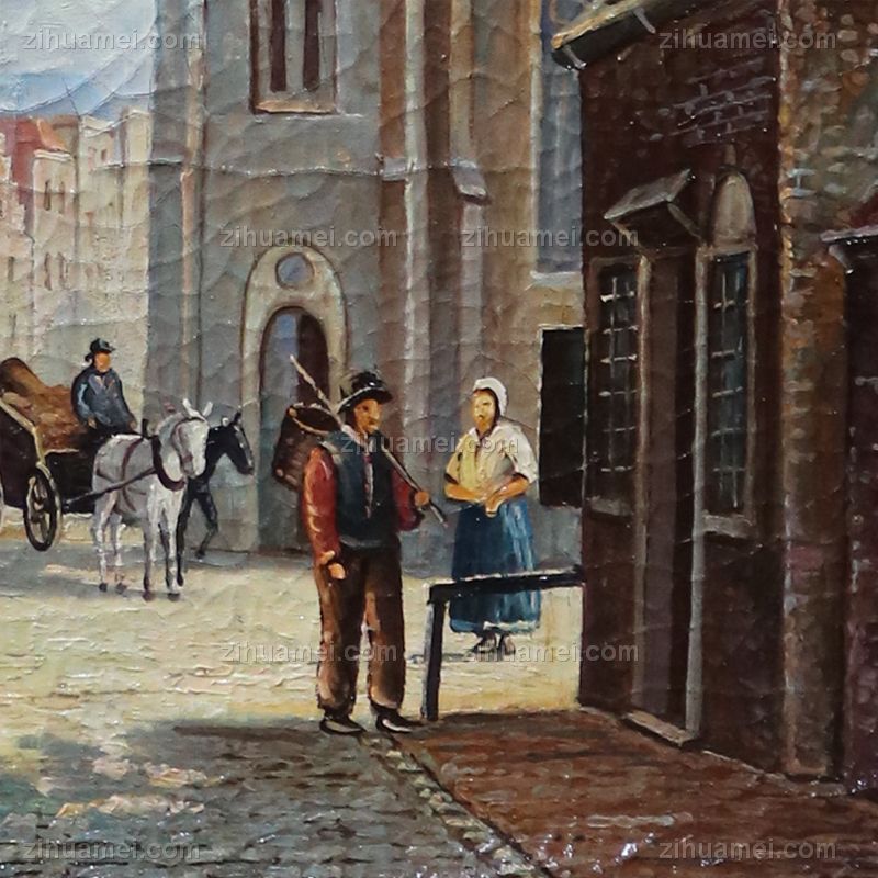 • 欧式经典 裂纹麻布油画 欧洲生活场景与建筑 线条框