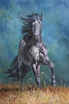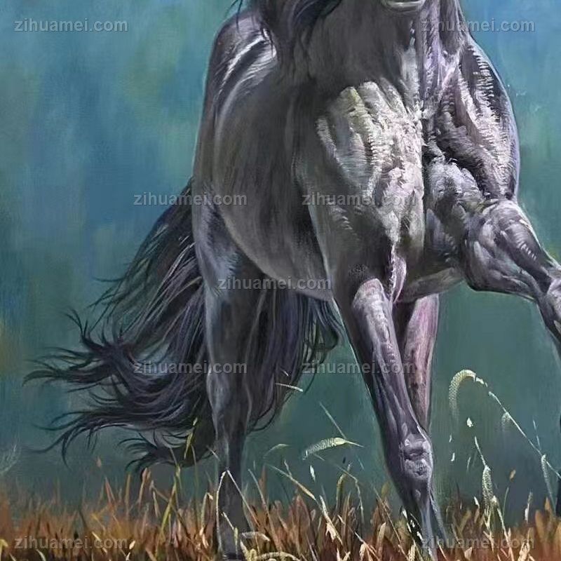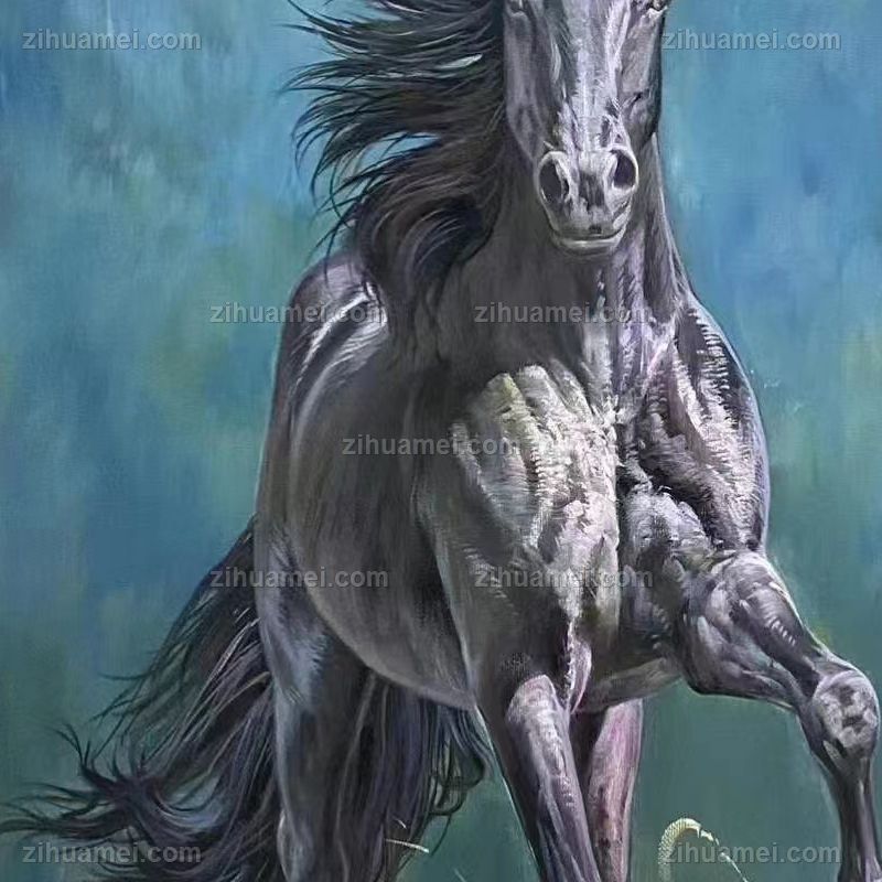 • 纯手绘骏马图小写意风格黑马图马到成功办公室挂画