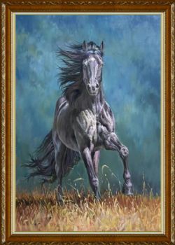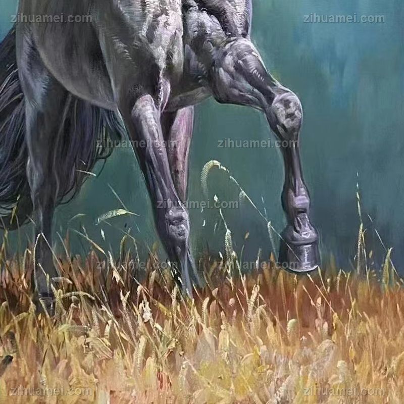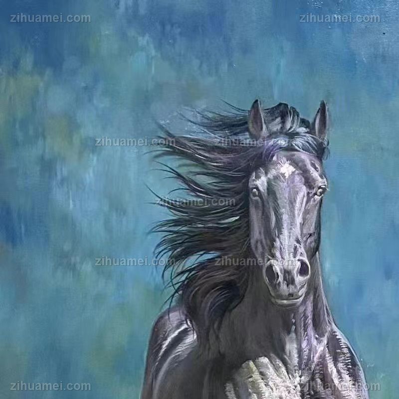 精品花卉白马图纯手绘写实动物油画实木画框 手绘