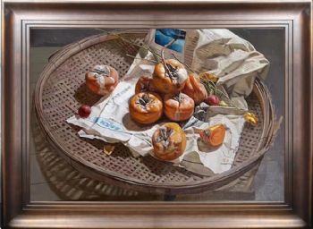 • 柿子静物油画事事如意新中式超写实手绘油画