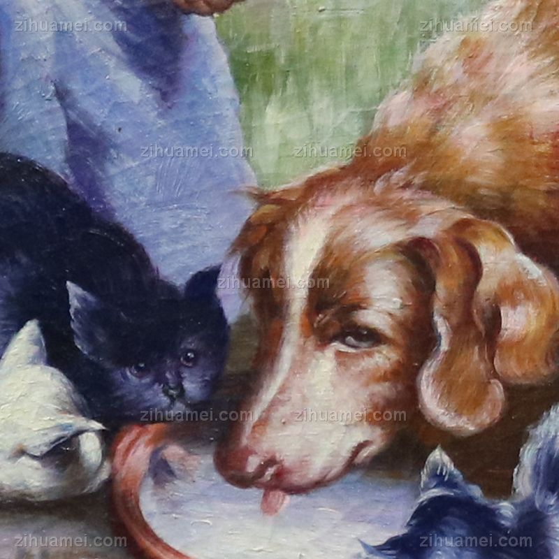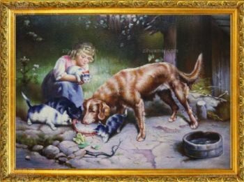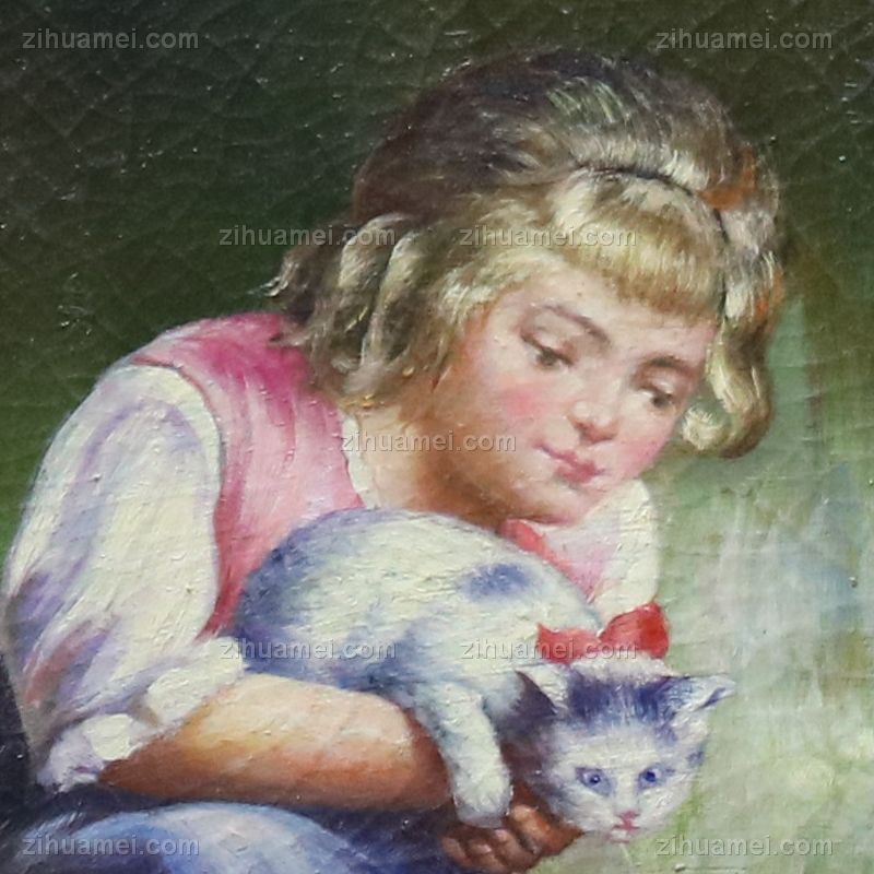 • 独家裂纹麻布油画 欧式经典油画 女孩 猫 狗 线条框 欧美人物画