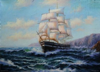 一帆风顺精品海浪帆船风景油画纯手绘油画 手绘