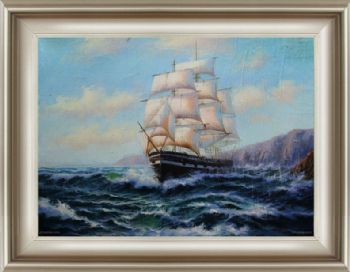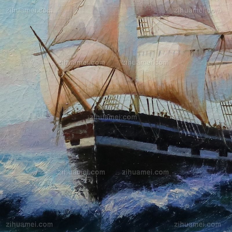 • 独家裂纹麻布油画 欧式经典油画 大帆船F 线条框