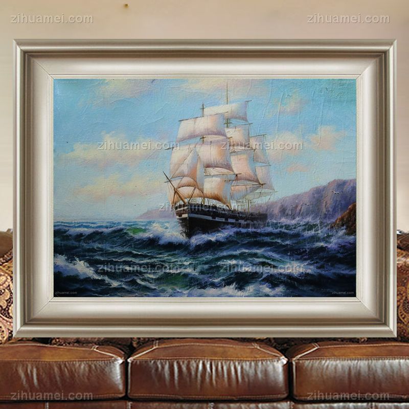 欧式海浪风景油画扬帆起航纯手绘帆船风景油画 手绘