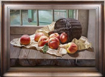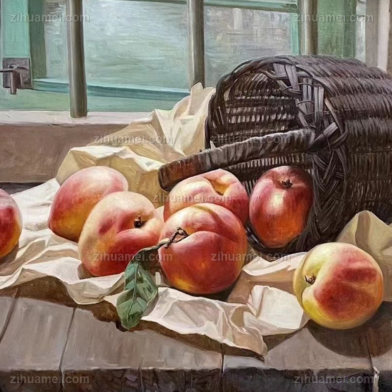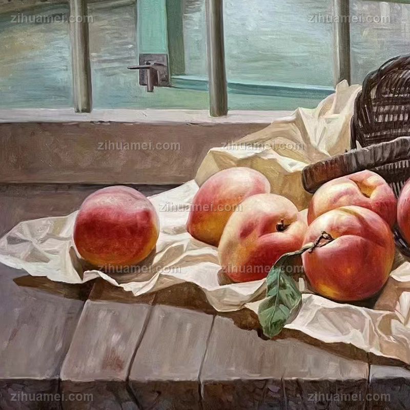 • 一框好桃纯手绘超写实水果静物写实油画新中式油画