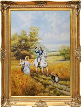 • 实力画师纯手绘现货欧式经典油画 依依不舍去送行 角花框 欧美人物画