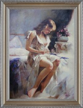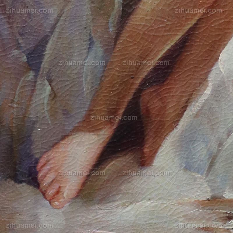 • 独家裂纹麻布油画 欧式油画 纯手绘手工 清晨起床的少女 线条框油画人体