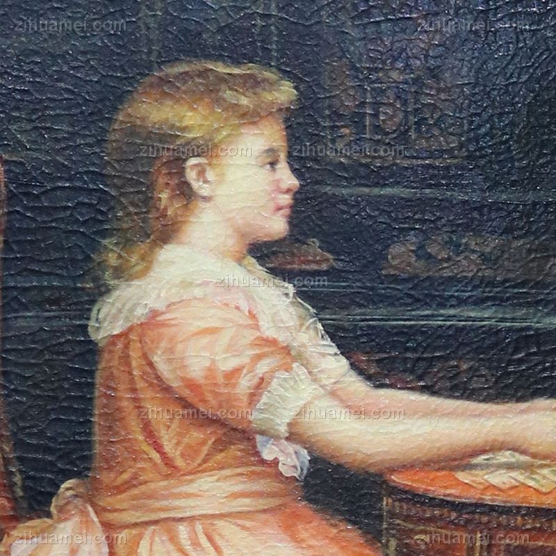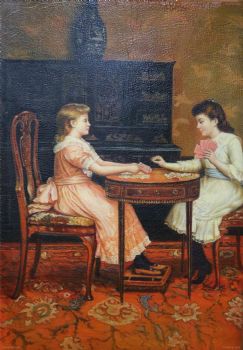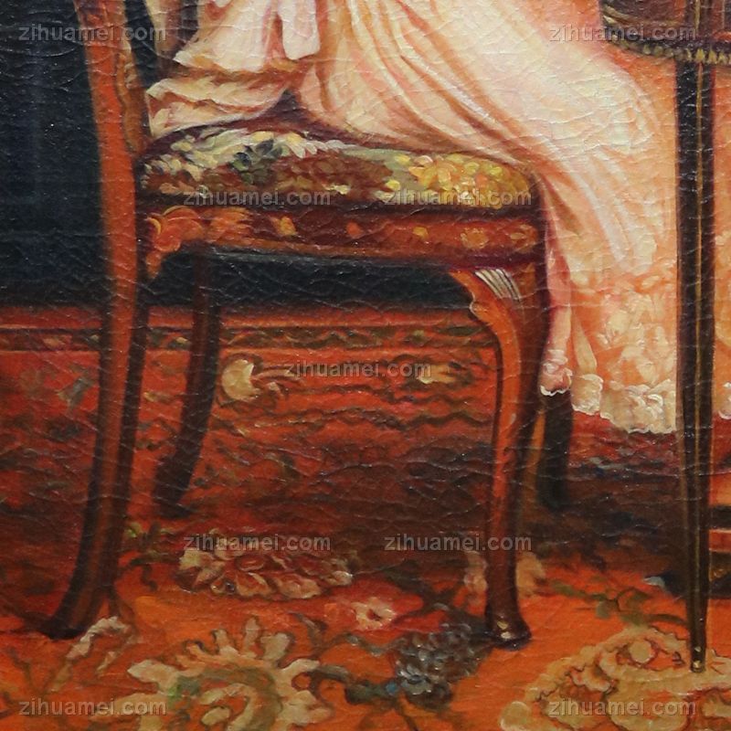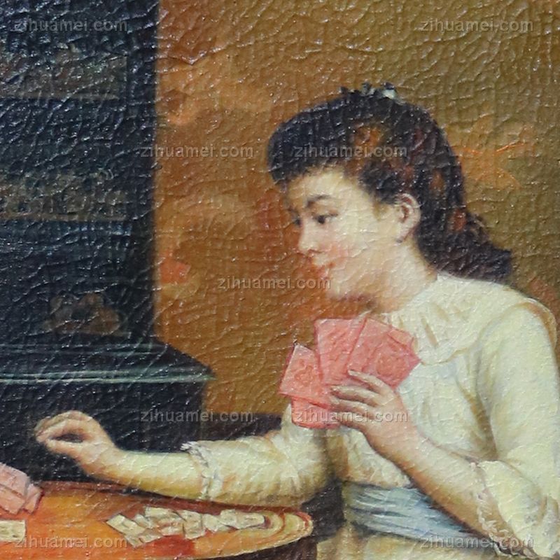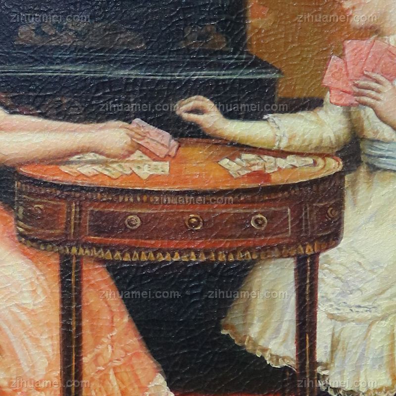 • 独家裂纹麻布油画 欧式经典油画 纯手绘手工 打牌的两个姑娘 欧美人物画