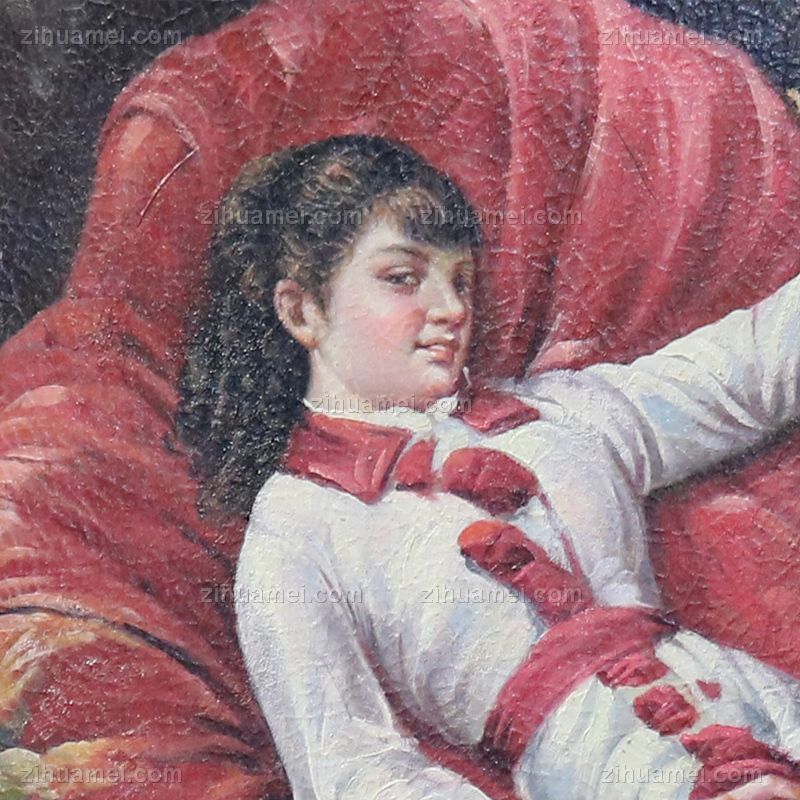 • 独家裂纹麻布油画 欧式经典油画 纯手绘手工 欧式贵妇 线条框 YM087754