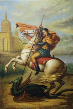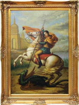 • 独家裂纹麻布油画 欧式经典油画 纯手绘手工 屠龙记 欧美人物画