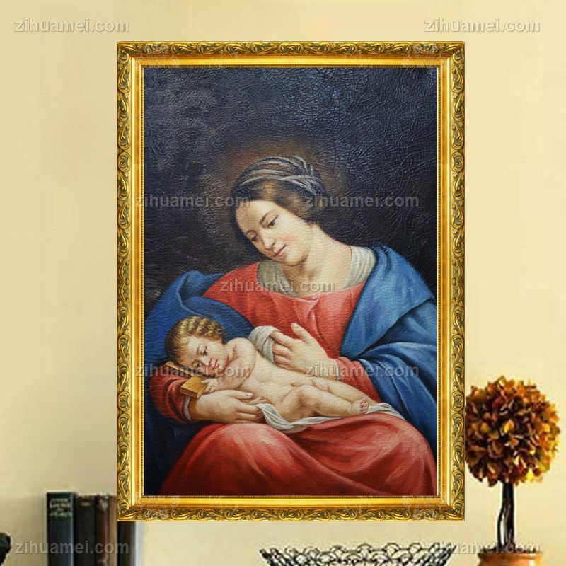 • 独家裂纹麻布油画 欧式经典油画 纯手绘手工 母与子 线条框 欧美人物画