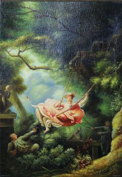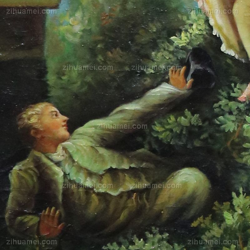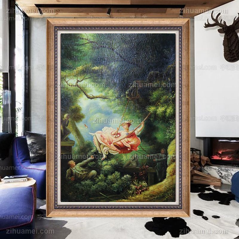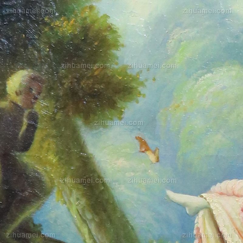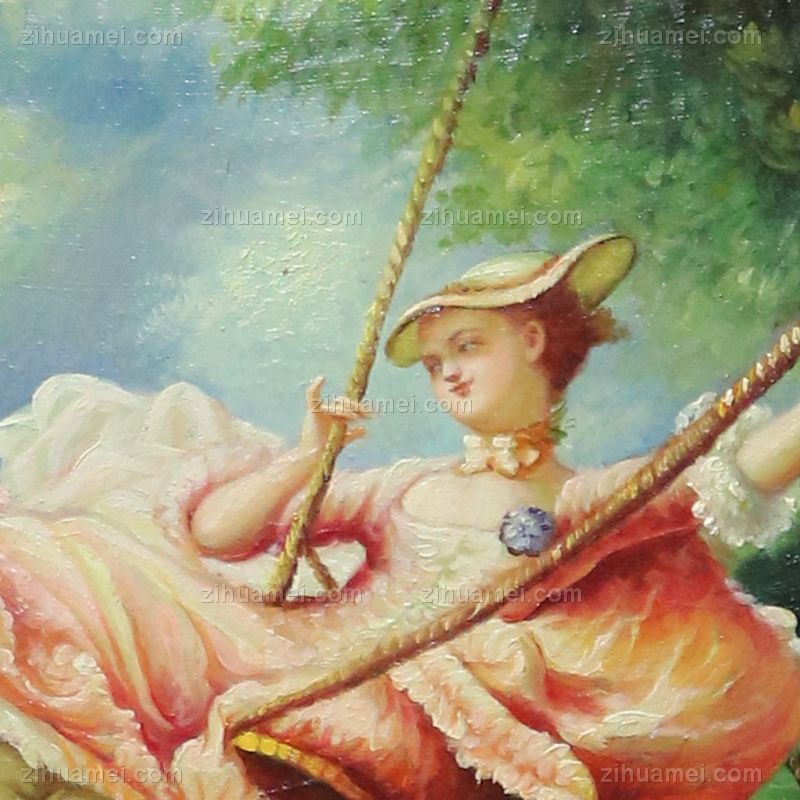 • 独家裂纹麻布油画 欧式经典油画 纯手绘手工 少年与少女荡秋芊 欧美人物画