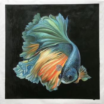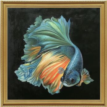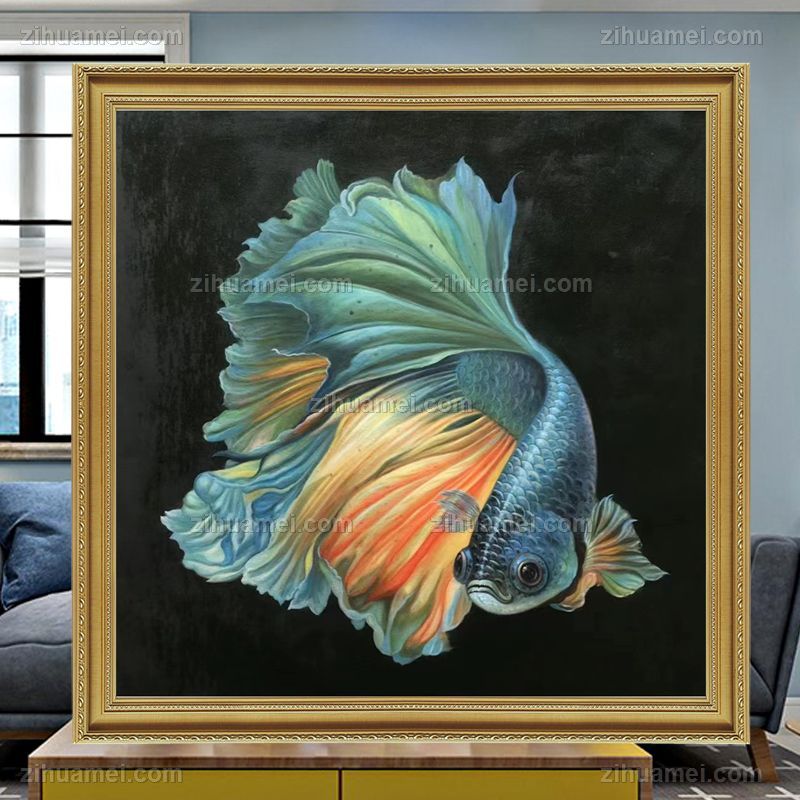精品写实纯手绘动物油画金龙鱼油画作品 手绘