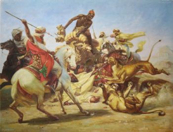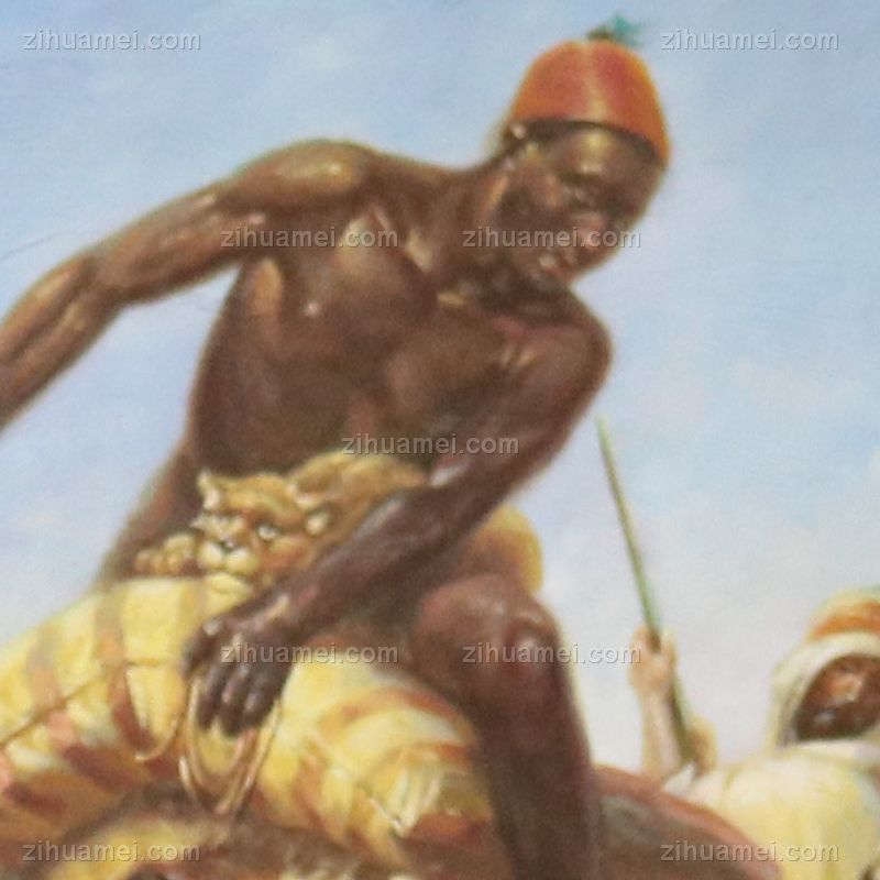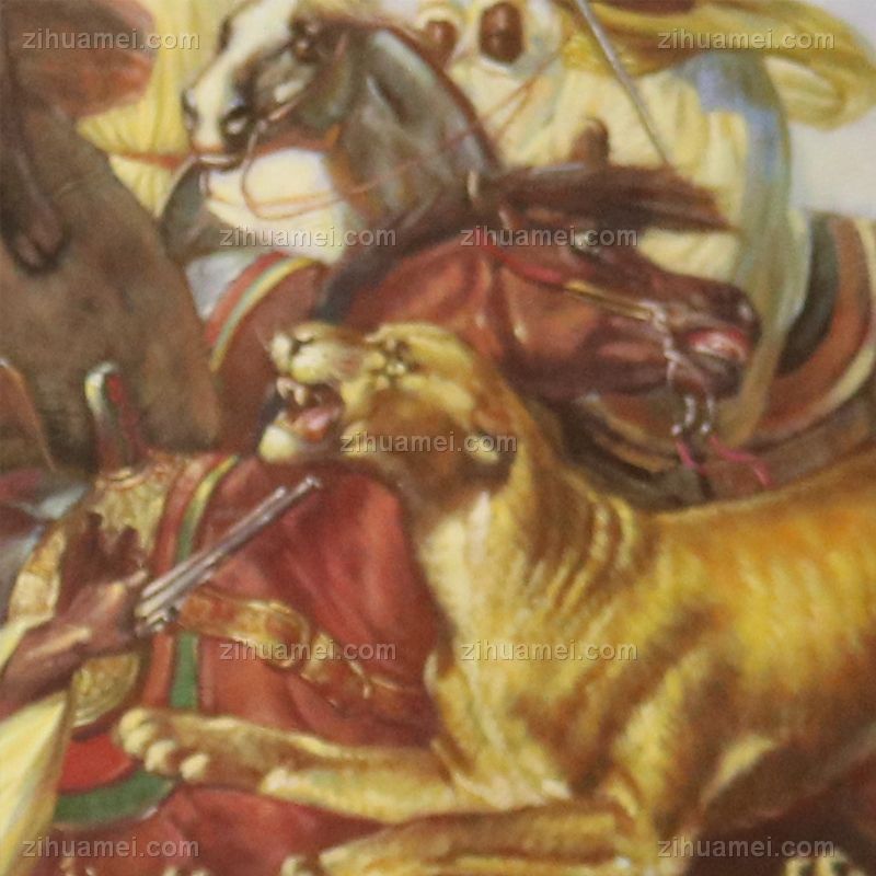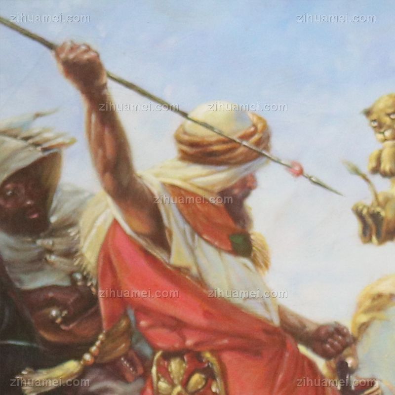 • 欧美人物画客厅挂画壁画餐厅玄关书房酒店 纯手绘手工 众人合力猎豹 线条框