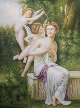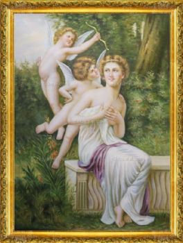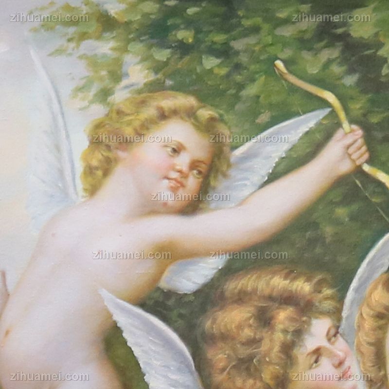 • 欧式油画 纯手绘手工 天使与美女 古典油画 实木画框