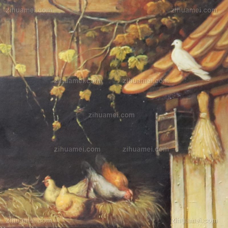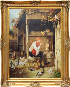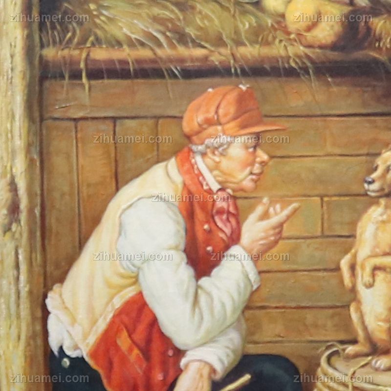 • 欧式油画 纯手绘手工 老头与家禽 线条框 欧美人物画