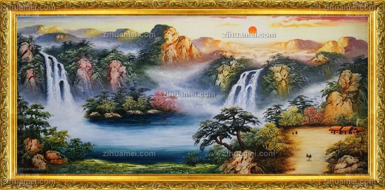 纯手绘风景油画山水画聚宝盆风景油画实木画框 手绘