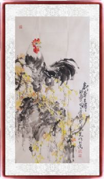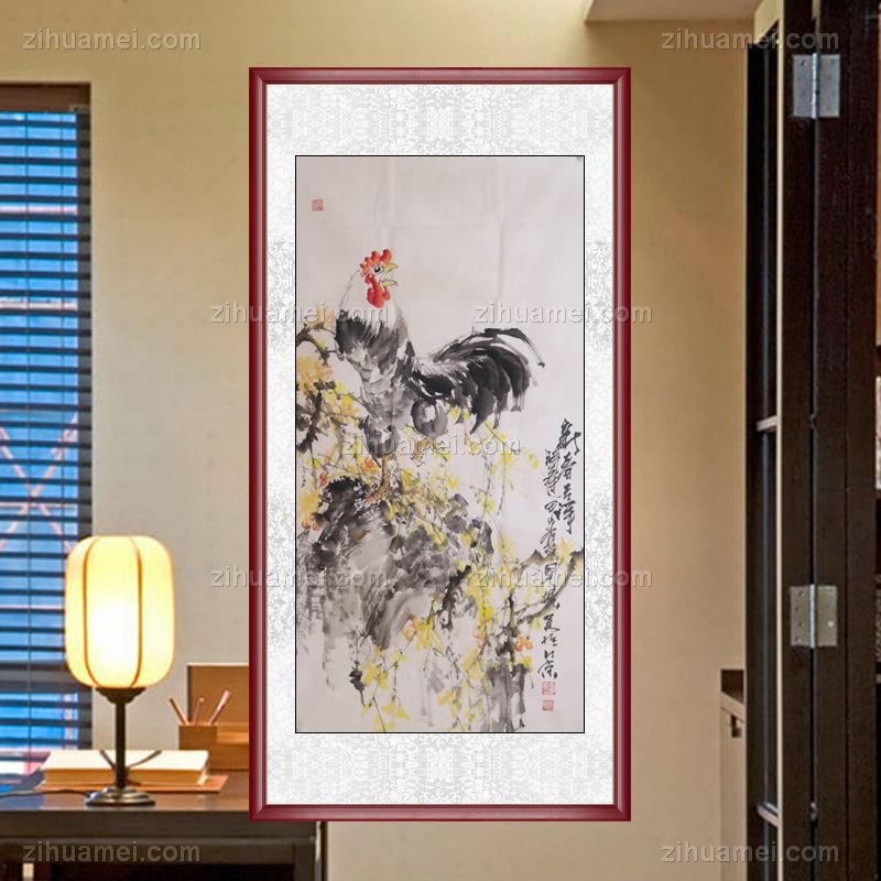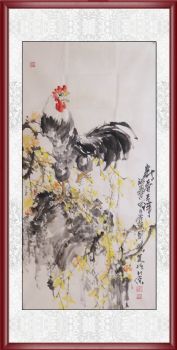 • 新春吉祥 大公鸡 手绘 手工 国画 典雅红褐实木框