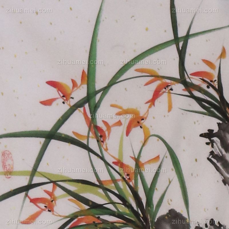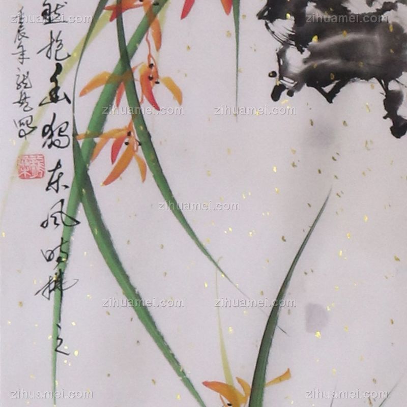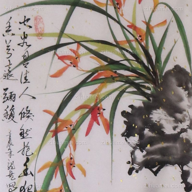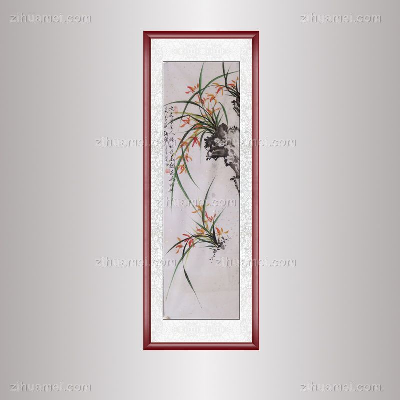 • 兰花香 手绘 手工 国画 典雅红褐实木框