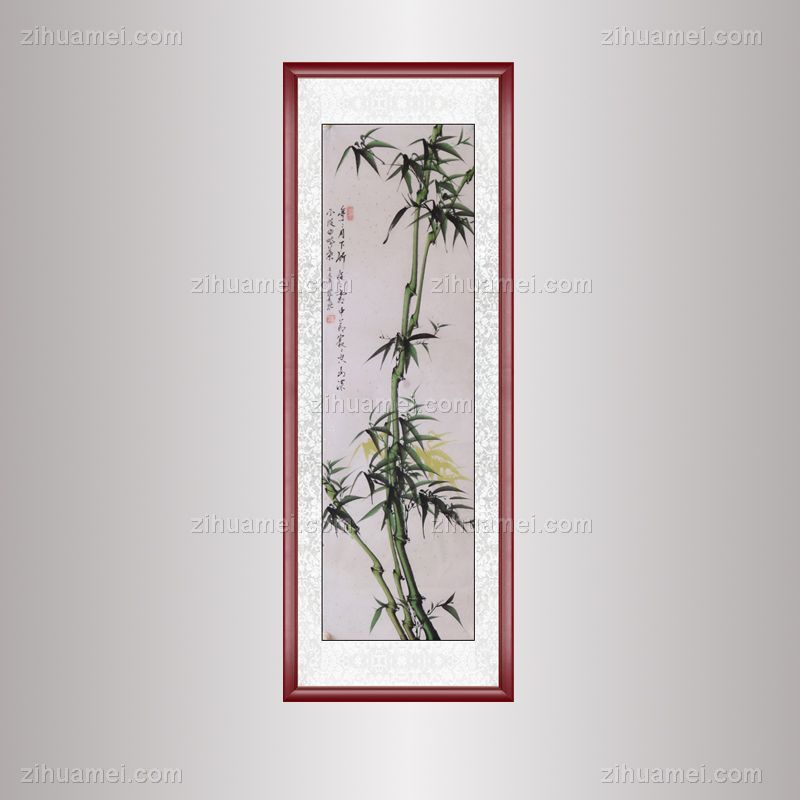 • 翠竹节节高 手绘 手工 国画 典雅红褐实木框