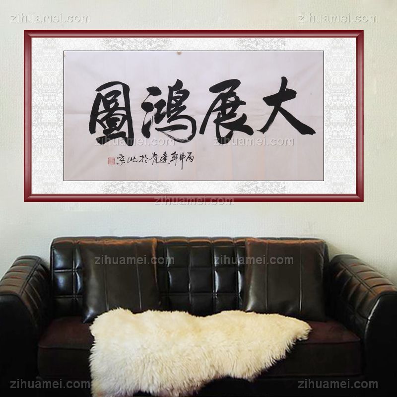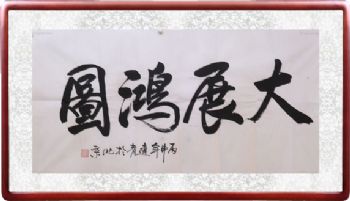 • 书法作品 大展鸿图 手绘 手工 国画 典雅红褐实木框