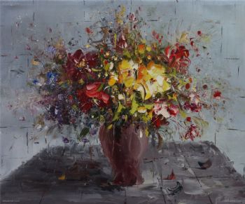 • 刀画 纯手绘手工 印象油画 花瓶 线条框