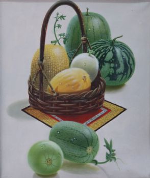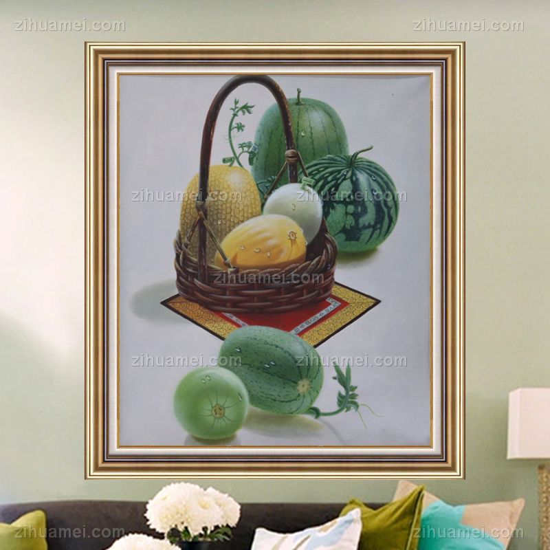 • 纯手绘手工 写实油画 水果与篮子