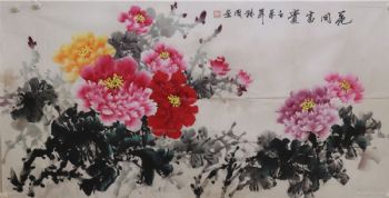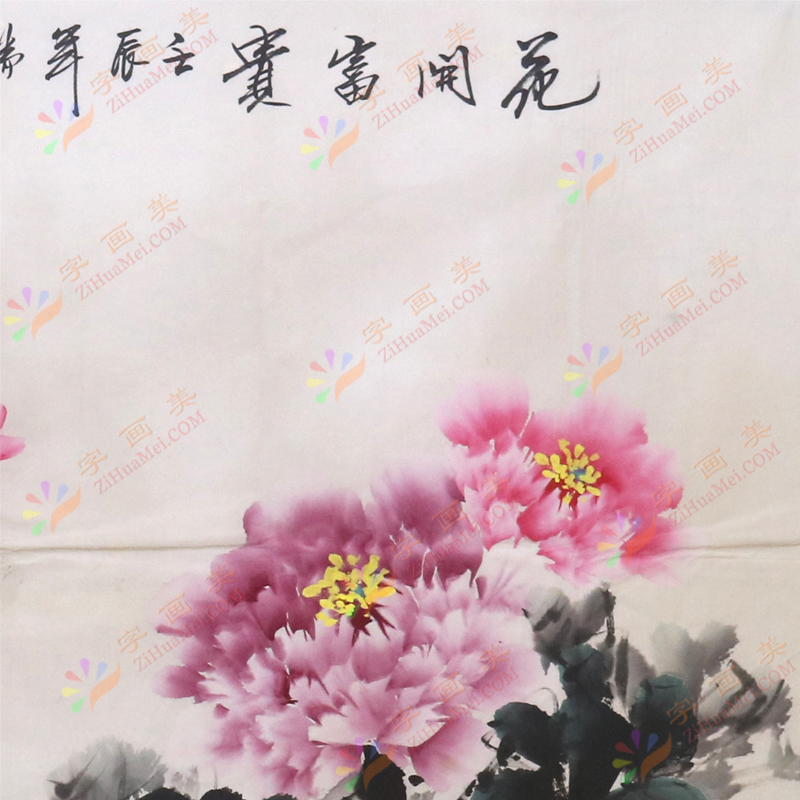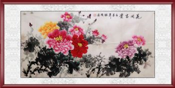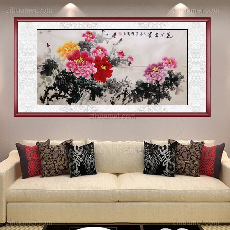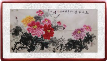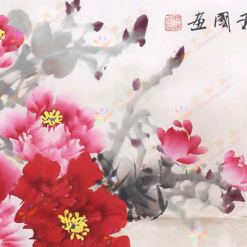 • 手绘 手工 花开富贵 国画牡丹 典雅红褐实木框