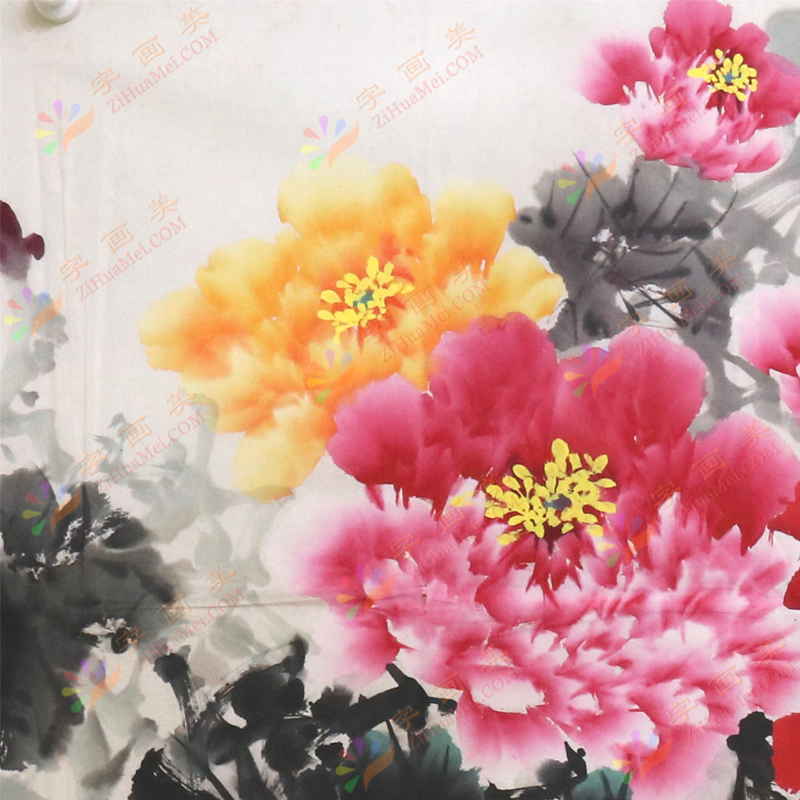 纯手绘国画工笔四尺竖幅牡丹花卉国画玄关挂画 手绘