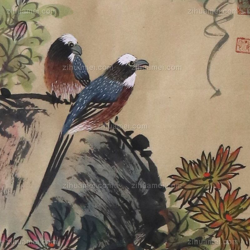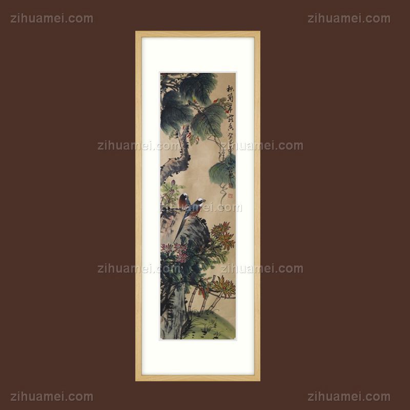 花鸟画 菊  国画 手绘 手工 国画 典雅红褐实木框 手绘