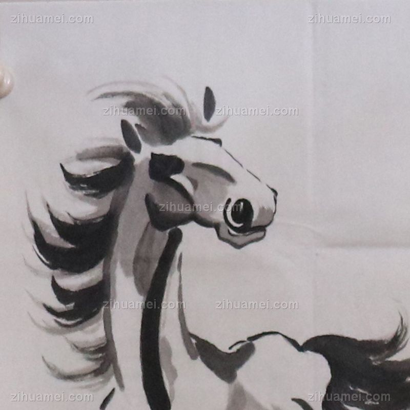 一匹黑马朝鲜国画水墨动物国画骏马图实木画框 手绘