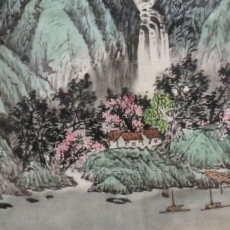 春山飞瀑 国画