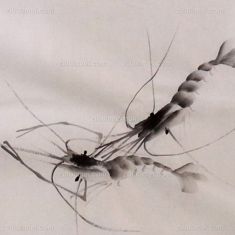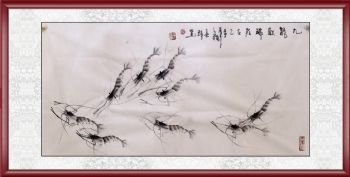 虾 清趣 手绘 手工 国画 典雅红褐实木框 手绘