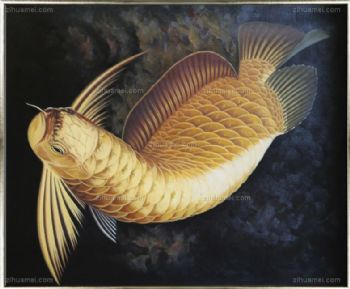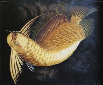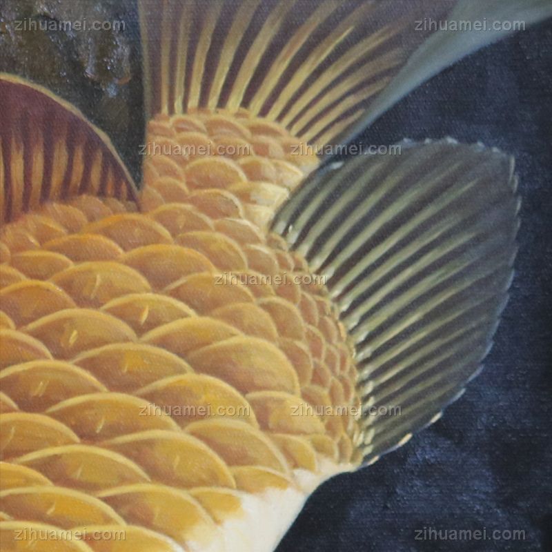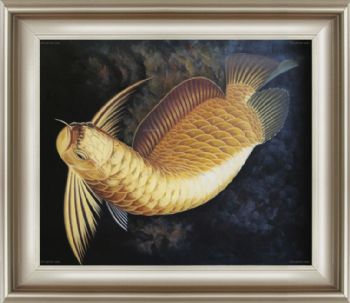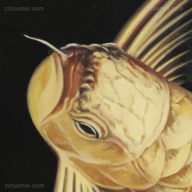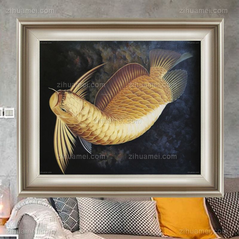 精品写实纯手绘动物油画金龙鱼油画作品 手绘