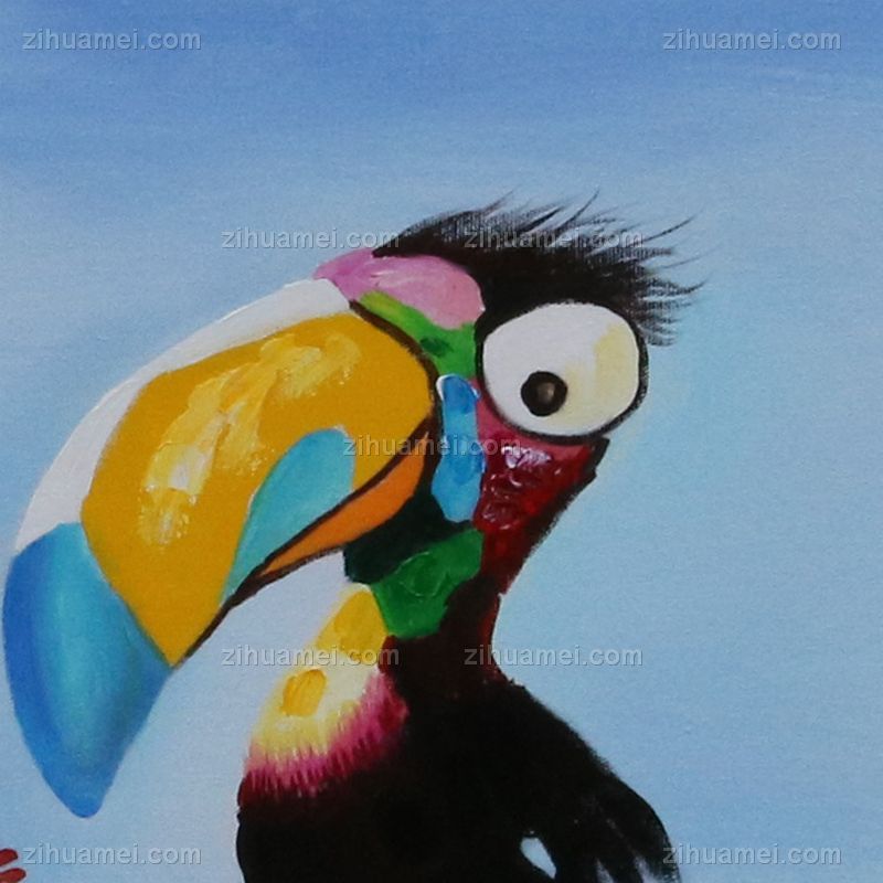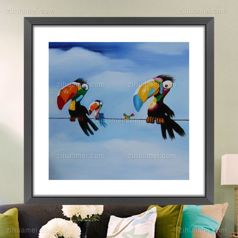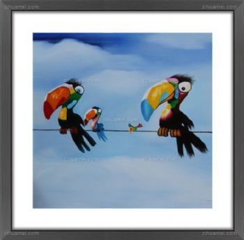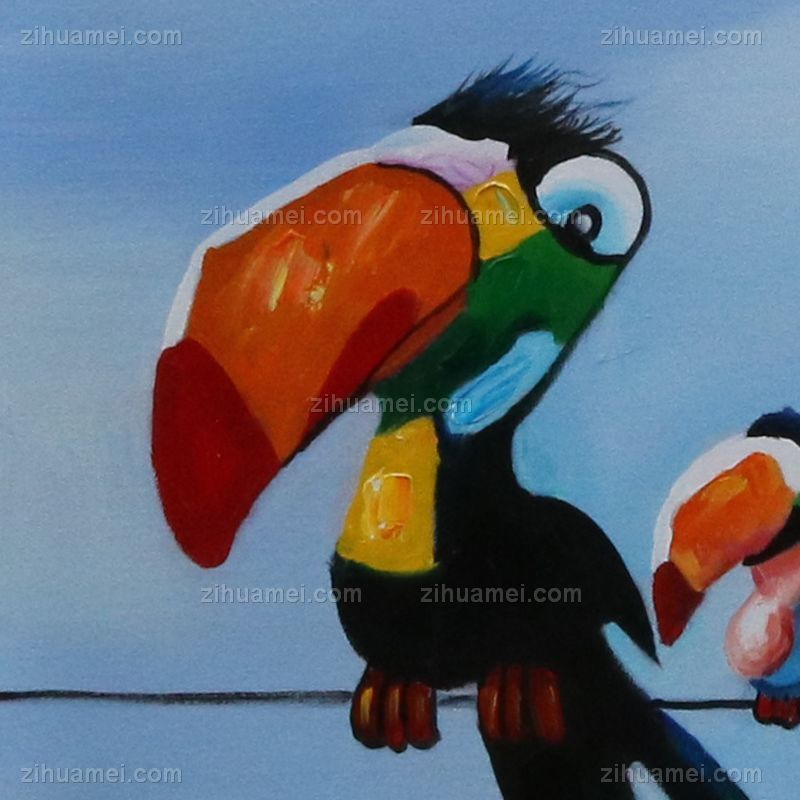 • 刀画 纯手绘手工 印象油画 站在线上美丽大嘴鸟 线条框