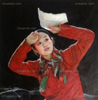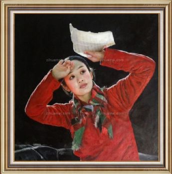 • 纯手绘手工 人物油画 女孩 纯朴 线条框 收藏油画 临摹名家作品