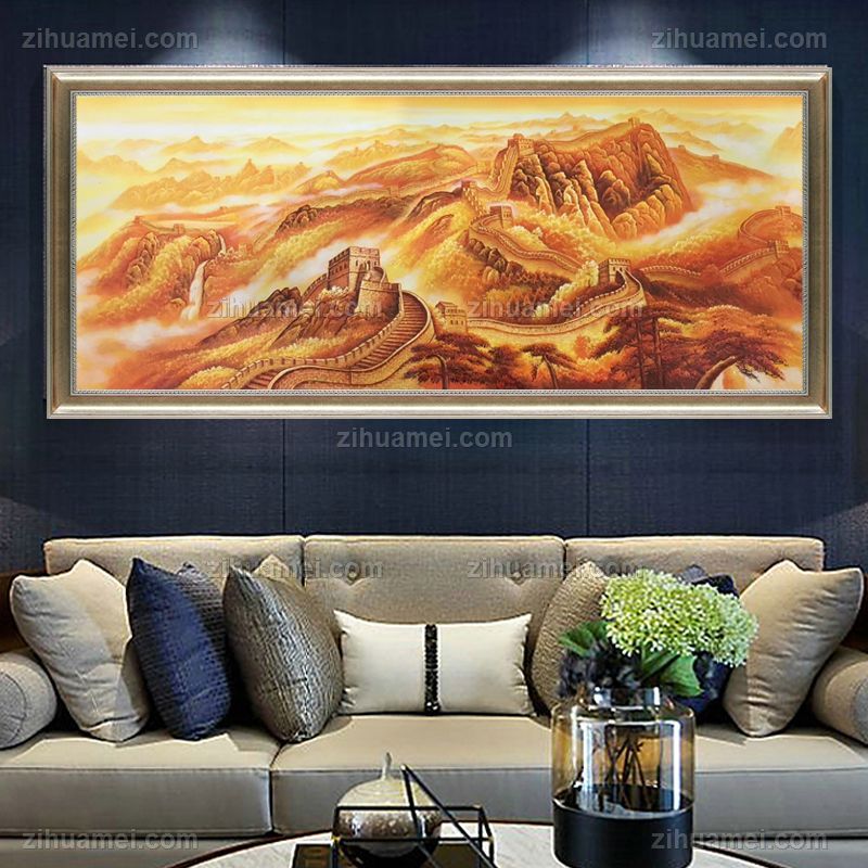 • 适合客厅 大厅 酒店挂画 纯手绘手工 中式油画 万里长城 线条框