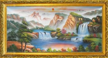 纯手绘风景油画山水画聚宝盆风景油画实木画框 手绘