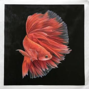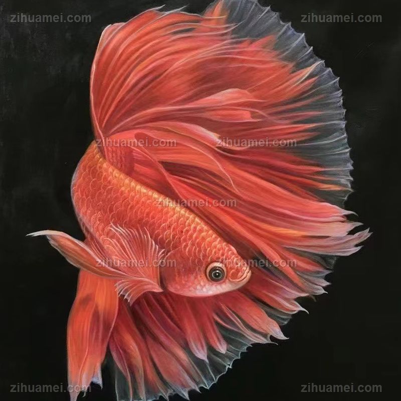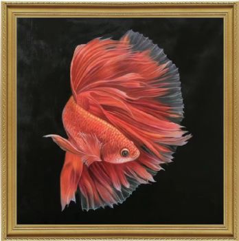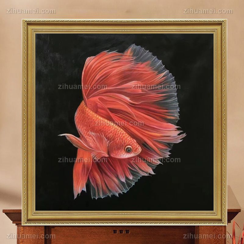 精品写实纯手绘动物油画金龙鱼油画作品 手绘