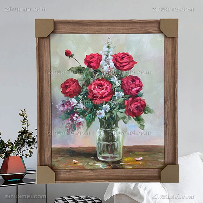 • 纯手绘玫瑰花印象花卉油画卧室挂画PS环保外框