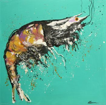 刀画 纯手绘手工 印象油画 多彩漂亮的虾