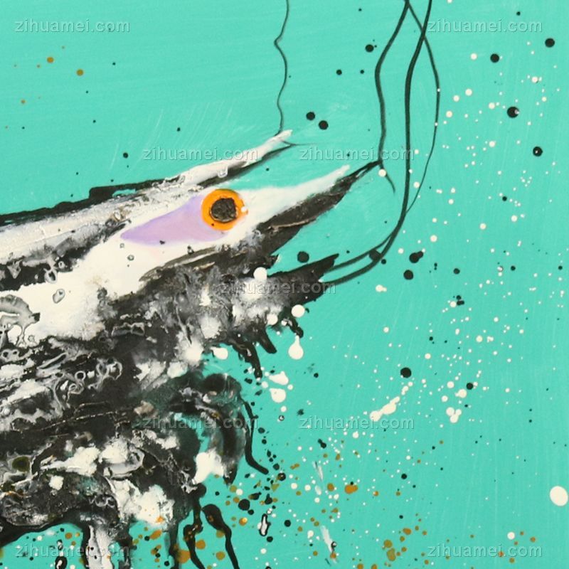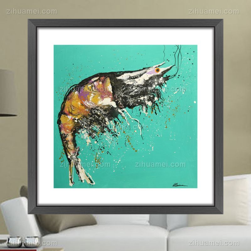 • 刀画 纯手绘手工 印象油画 多彩漂亮的虾 线条框(二)