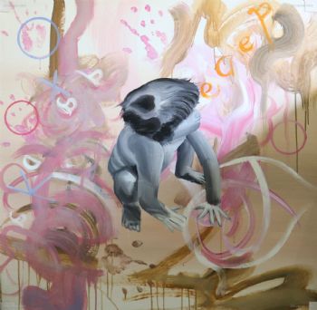 原创艺术手法现代可爱小狗抽象动物油画厚肌理当代艺术作品 手绘