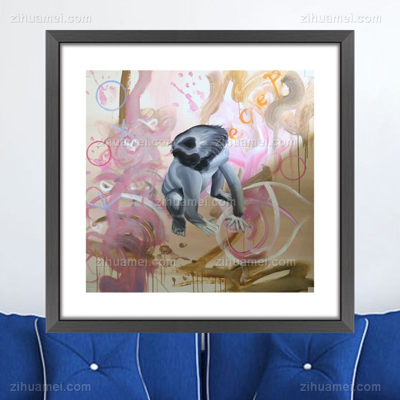 纯手绘铝合金外框抽象动物油画现代装饰油画虎虎生威动物油画 手绘