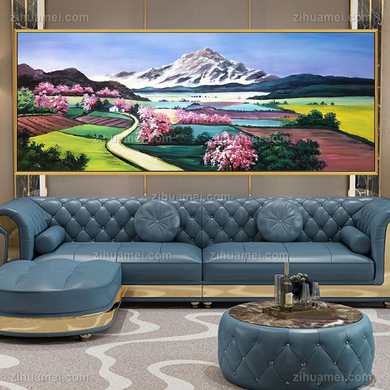 纯手绘风景油画花海春天桃花开玄关装饰油画 手绘