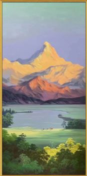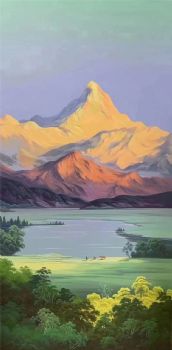 • 金山系列现代装饰玄关画现代轻奢简约风景油画纯手绘油画PS环保线条框